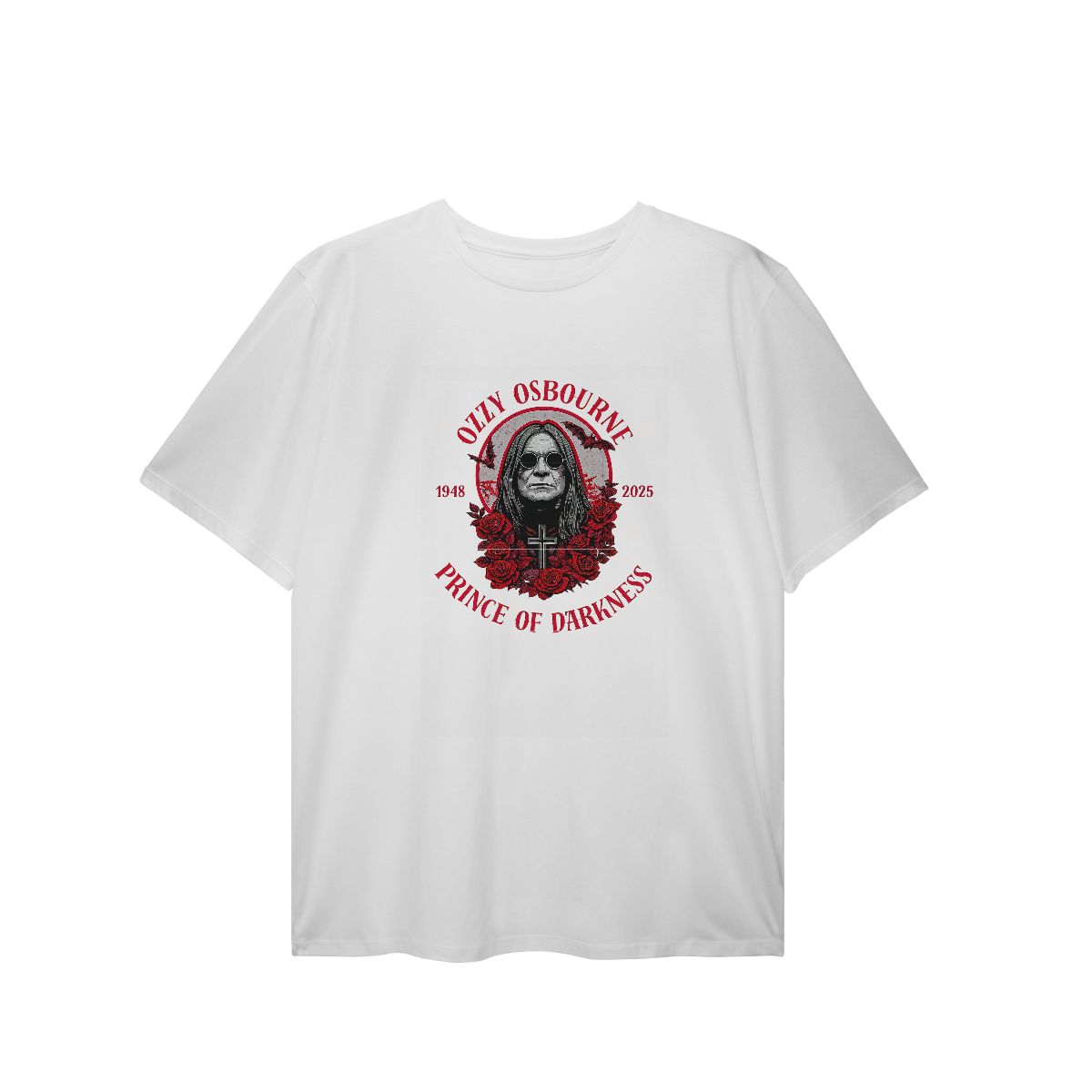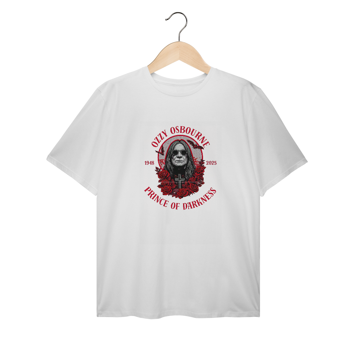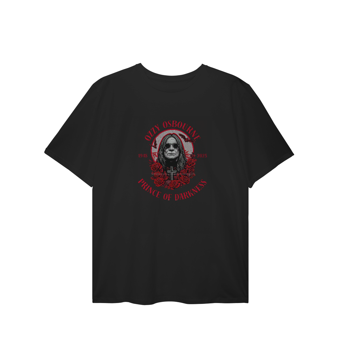Uma homenagem à mente sombria mais brilhante do rock! Essa camiseta celebra a trajetória do Príncipe das Trevas, Ozzy Osbourne — um ícone que ultrapassa gerações e moldou o heavy metal com sua presença única e atitude inconfundível.