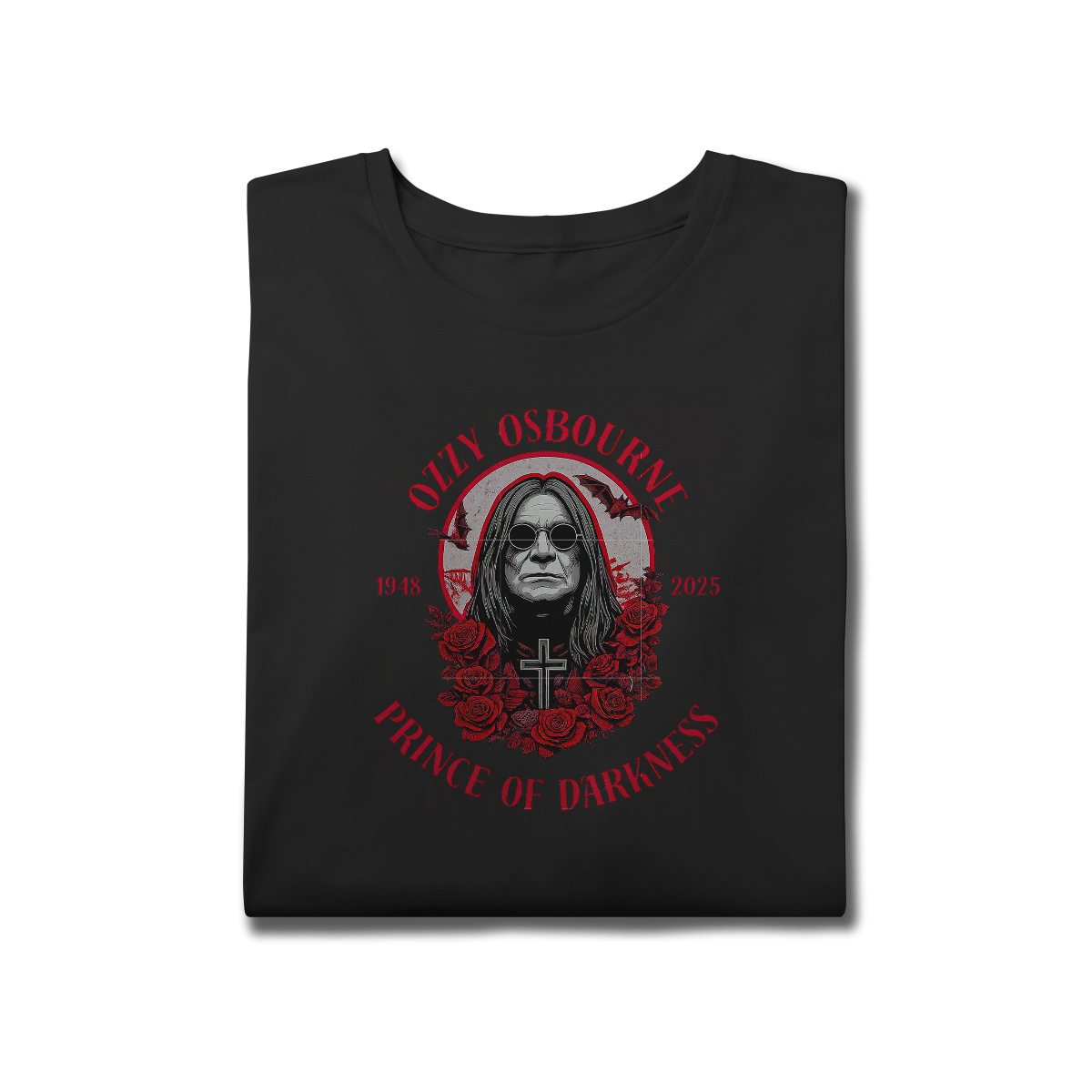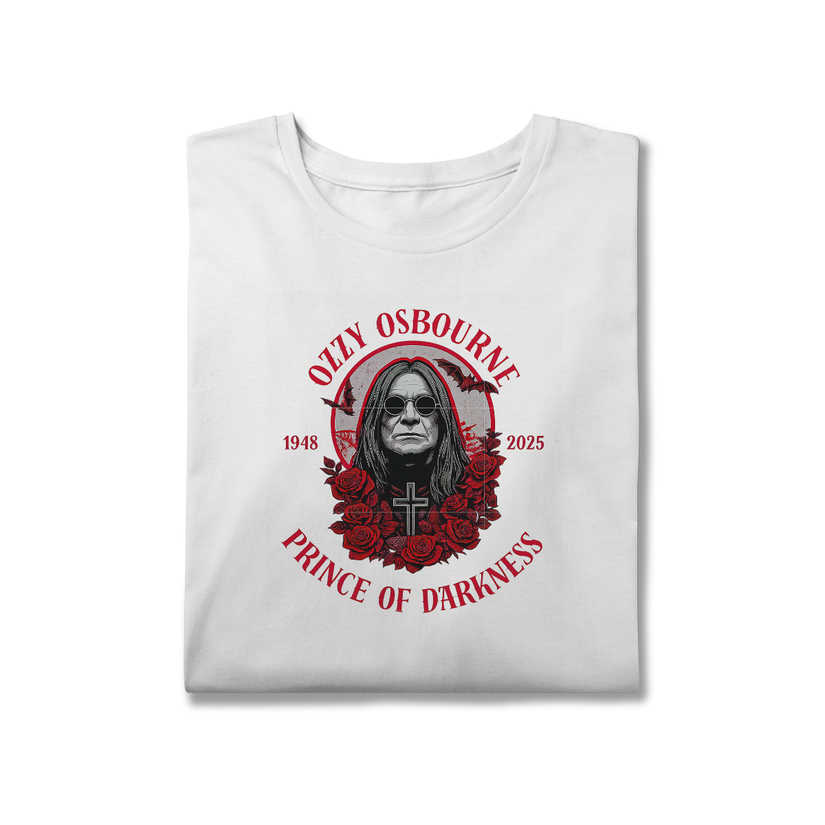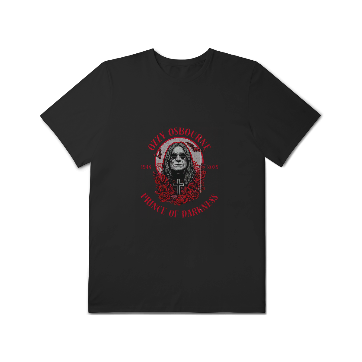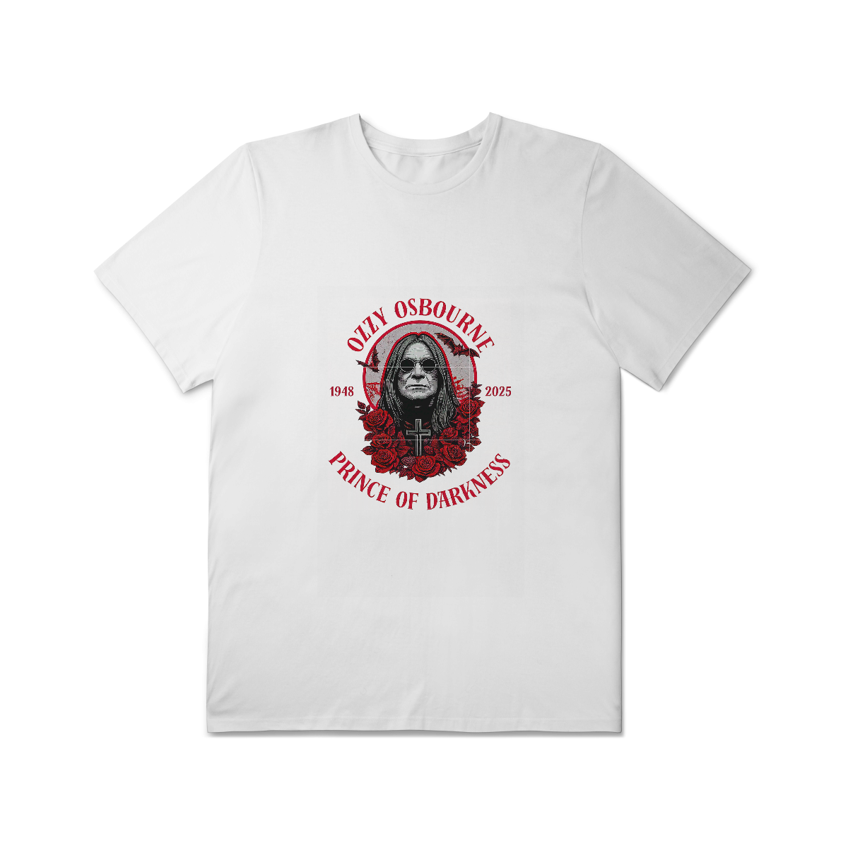 Uma homenagem à mente sombria mais brilhante do rock! Essa camiseta celebra a trajetória do Príncipe das Trevas, Ozzy Osbourne — um ícone que ultrapassa gerações e moldou o heavy metal com sua presença única e atitude inconfundível.